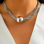 Wyrazisty, a jednocześnie elegancki design tworzy piękny punkt centralny całego looku, a ciepłe złote lub srebrne wykończenie nadaje ponadczasowego blasku, który pasuje do każdego stylu. Pomimo efektownego wyglądu naszyjnik jest lekki i wygodny, dzięki czemu możesz nosić go przez cały dzień bez żadnych kompromisów. Doskonale sprawdzi się zarówno z casualowymi bluzkami na co dzień, jak i z ulubioną sukienką na wieczorne wyjścia wymagające odrobiny glamouru. To ponadczasowy dodatek, do którego będziesz wracać przez wiele lat, idealna równowaga między wyrazistością a elegancją.
