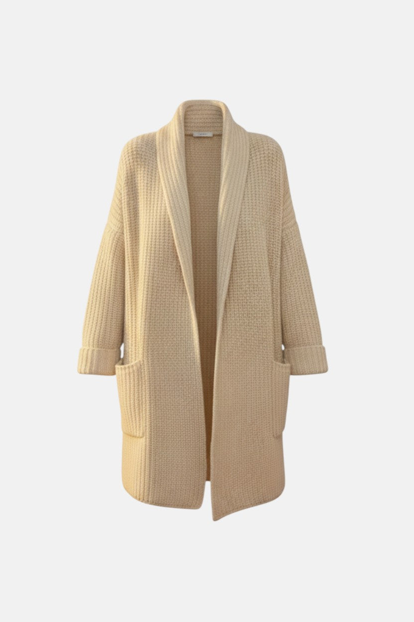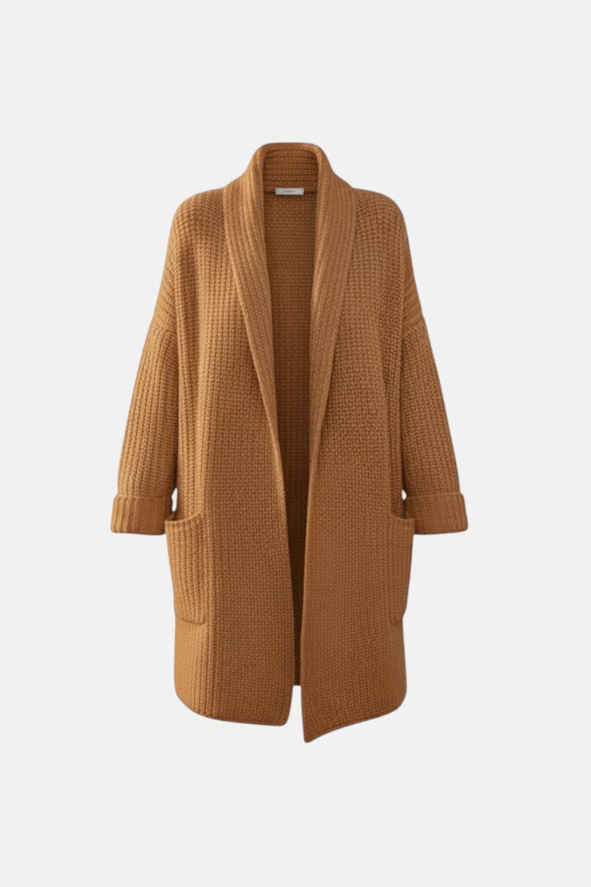 Otul się miękkim ciepłem Urszula - Sweter z kieszeniami, gdzie styl i wygoda spotykają się w doskonałej harmonii. Wykonany z puszystego materiału dzianinowego, z luźno otwartym przodem, stanie się twoją ulubioną warstwą o każdej porze roku.