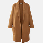 Bez wysiłku styl – otwarty przód i elegancki kołnierz w swobodnym, a jednocześnie wyrafinowanym wyglądzie.