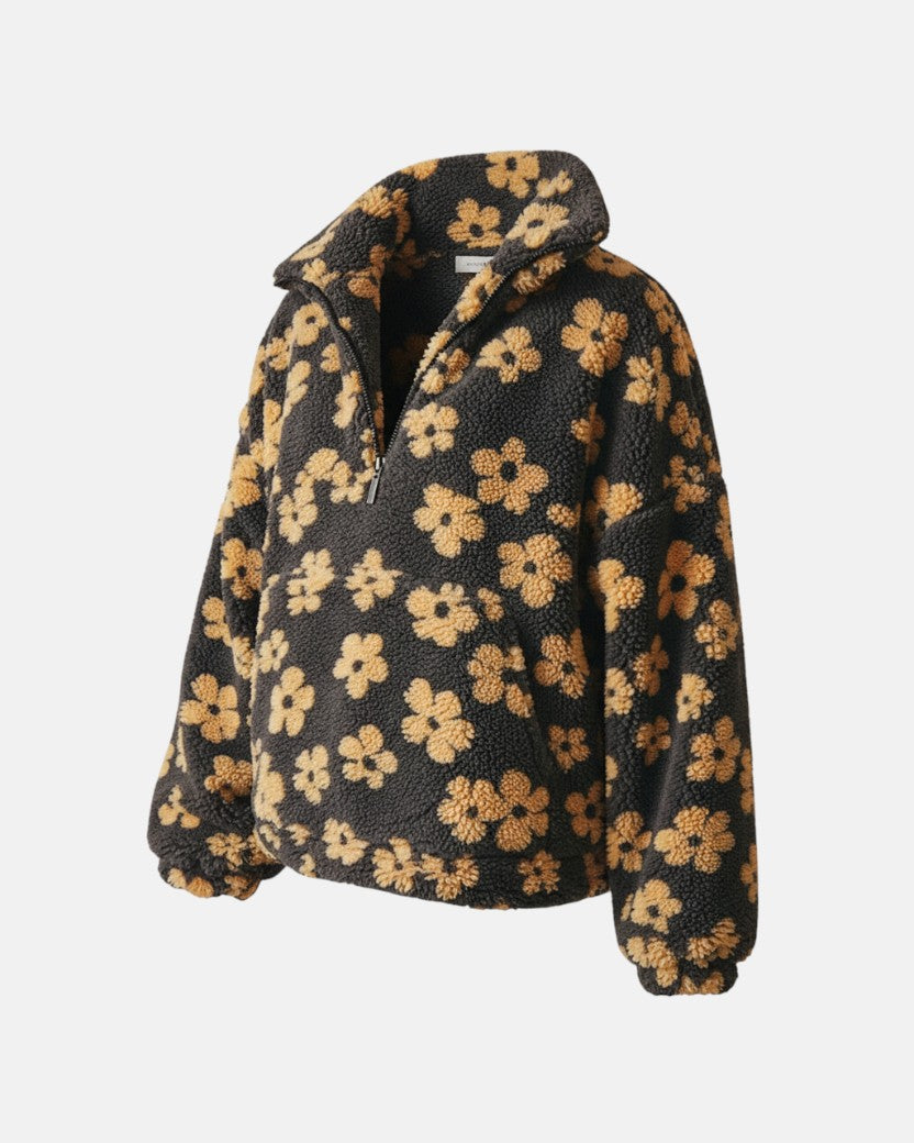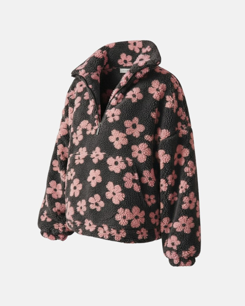 Owiń się w czystym komforcie z Dominika - Kwiatowy Ciepły Fleecepullover. Wykonany z miękkiego Sherpa, który przypomina ciepły uścisk – idealny na chłodne jesienne dni lub przytulne wieczory w domu.
