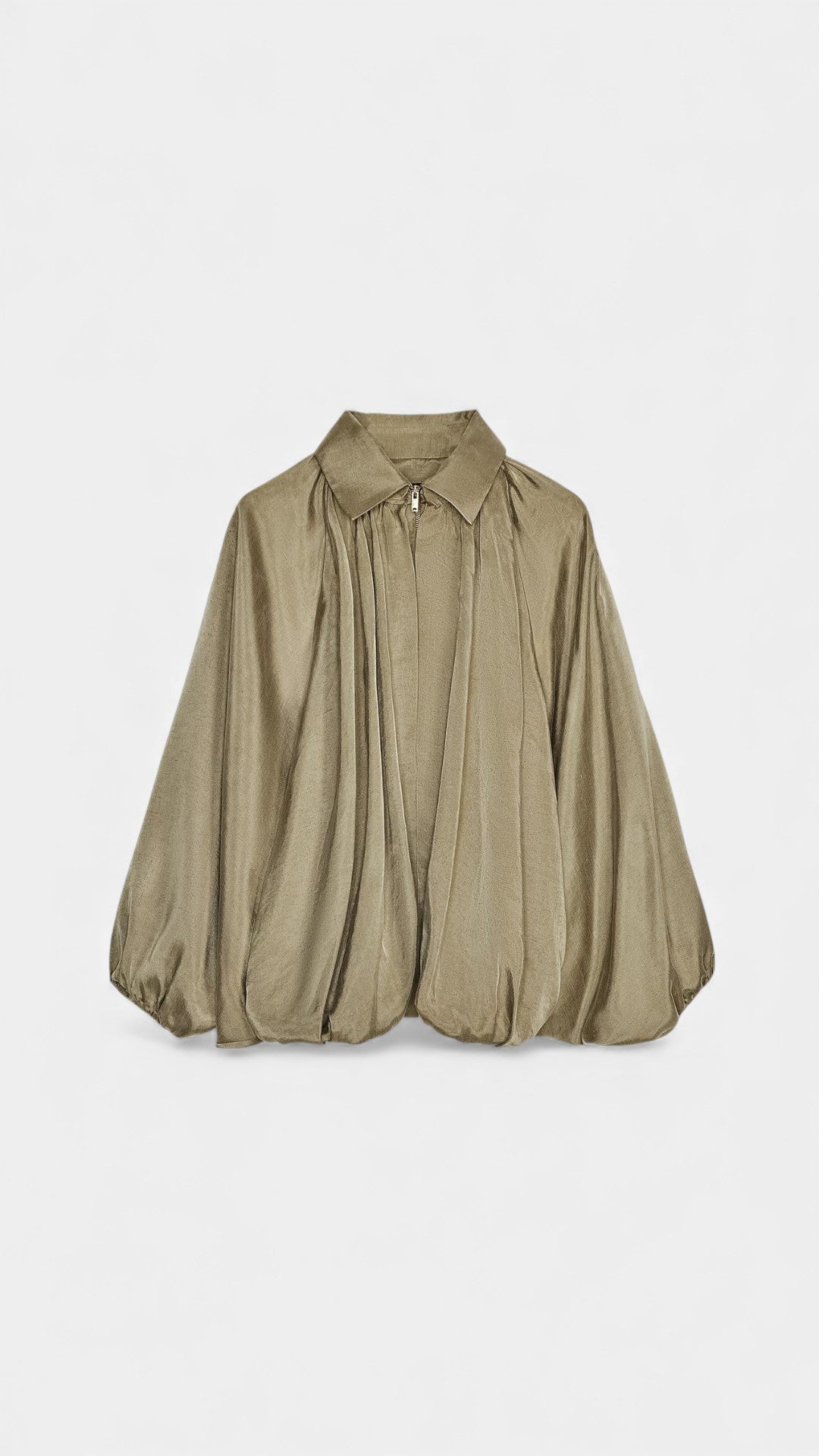Kurtka bomber o szerokim i nowoczesnym stylu, inspirowana amerykańskim designem. Wyposażona w zamek błyskawiczny z przodu i wygodny krój, idealna do zdecydowanego i wszechstronnego miejskiego looku o każdej porze roku.