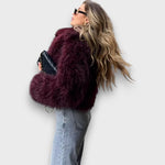 Mile to więcej niż tylko płaszcz – to afirmacja miękkości, intensywnego koloru i bezkompromisowego stylu. Głęboki odcień bordowy nadaje każdemu wyglądowi tajemniczej elegancji, podczas gdy futerko ekologiczne ogrzewa cię jak zimowy sen. Must-have dla tych, którzy pragną się wyróżniać, nie będąc przy tym przesadnymi.