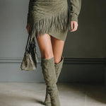 Nela – oliwkowa sukienka mini z suede