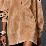 Ta stylowa sukienka z ekoskóry w kolorze camel z odkrytymi ramionami łączy w sobie bezwysiłkowy szyk z nutą nowoczesnej elegancji. Design z odkrytymi ramionami i luźny krój nadają współczesny klimat, podczas gdy miękka tkanina z ekoskóry zapewnia komfort i luksus. Idealna na casualowe wyjścia, dzienne wydarzenia lub elegancką noc, ta sukienka to wszechstronny dodatek do twojej garderoby.