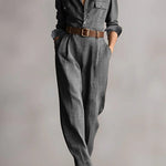 • Bezproblemowe stylizacje: Zaprojektowany z kieszeniami na piersi i podwiniętymi mankietami, ten kombinezon doskonale komponuje się z botkami lub szpilkami, tworząc natychmiastowy elegancki wygląd.
