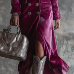 Przyciągnij uwagę ponadczasową elegancją. Vera to długa, dopasowana sukienka blazerowa wykonana z wysokiej jakości weluru, ozdobiona guzikami w stylu vintage i z elegancko opadającą sylwetką. Ustrukturyzowane ramiona i głęboki dekolt tworzą wyrafinowany, a zarazem odważny wygląd — natychmiastowy element przyciągający wzrok na każdą specjalną okazję.