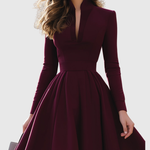 Ciemny odcień bordo emanuje elegancją, a fason doskonale eksponuje sylwetkę. Świetny wybór na ważną okazję!