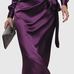Wyrafinowana, zmysłowa i ponadczasowa — ta głęboka śliwkowa sukienka z satyny jest prawdziwym ucieleśnieniem nowoczesnej elegancji. Jedwabisty, płynny materiał pięknie układa się na ciele, a samodzielnie wiązany pas podkreśla sylwetkę z subtelną gracją. Idealna na wieczorne wydarzenia, przyjęcia koktajlowe czy romantyczne kolacje, dodaje pewności siebie i uwodzicielskiego uroku każdej okazji.