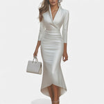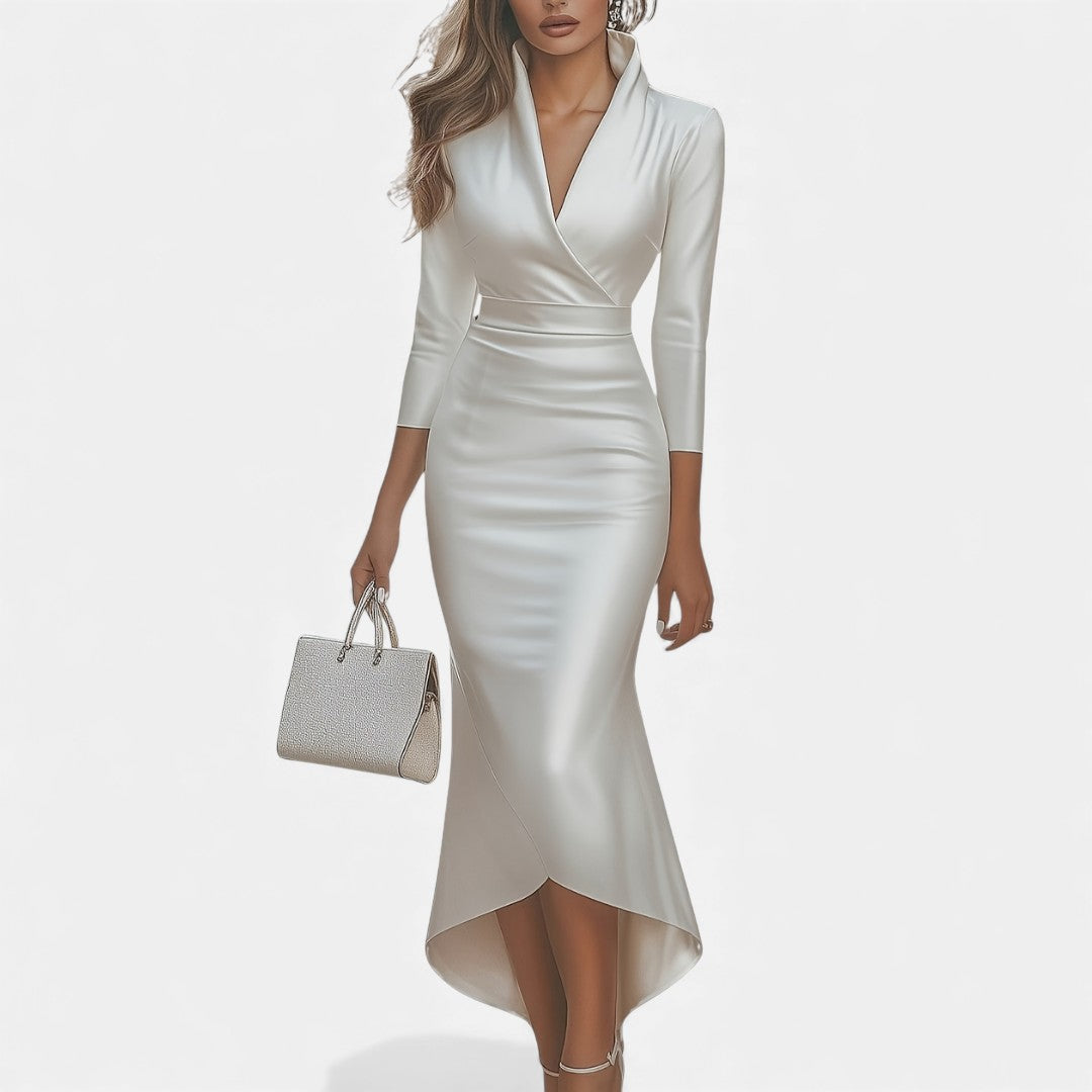 Karolina - Satynowa Sukienka Wieczorowa z Dekoltem w Serek