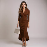 Ciemny odcień bordo emanuje elegancją, a fason doskonale eksponuje sylwetkę. Świetny wybór na ważną okazję!