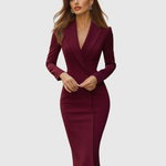 Ciemny odcień bordo emanuje elegancją, a fason doskonale eksponuje sylwetkę. Świetny wybór na ważną okazję!
